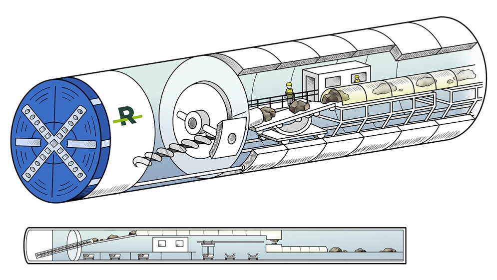 Illustration by Tania Mignacca / The tunnel boring machine "Alice".