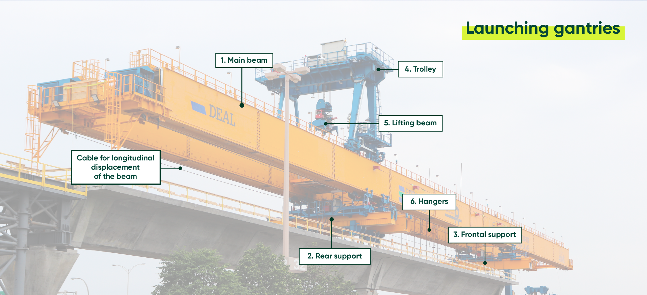 - Disassemble the parts of the launching gantry in order to isolate each of the main beams, place them on the ground using two 600-tonne mobile cranes at once, then move them by special convoy.