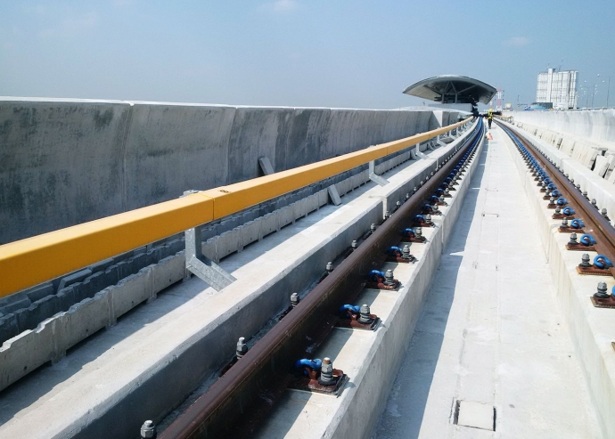 As its name indicates, this is a third rail laid close to the running rails that transmits power (traction) to the trains along the whole track. Being close to the rails, the third rail is easier to fit into the urban landscape because it is less visible than the catenary.