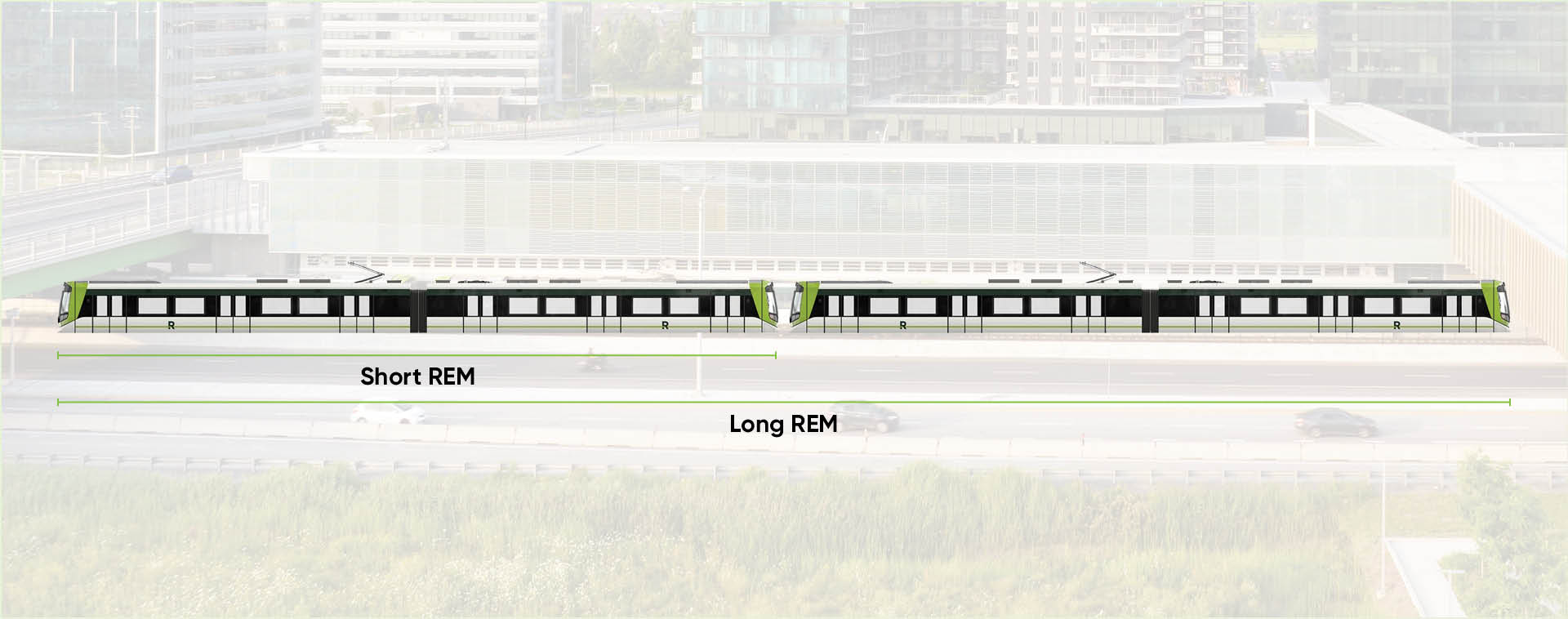 The REM network is designed for two types of car combinations: short REM trains and long REM trains.
