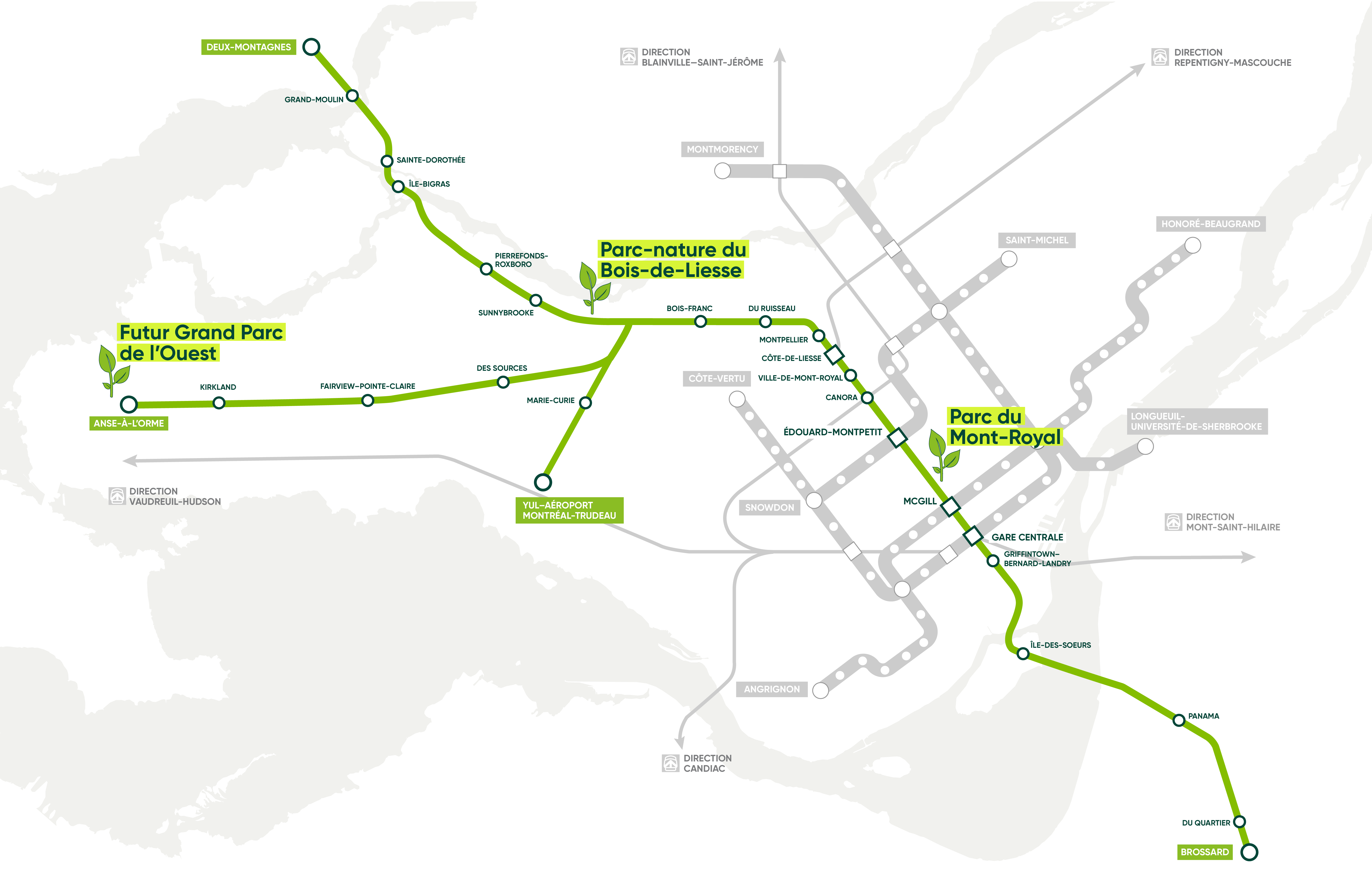 Carte du REM : 3 grands parcs reliés par le REM.