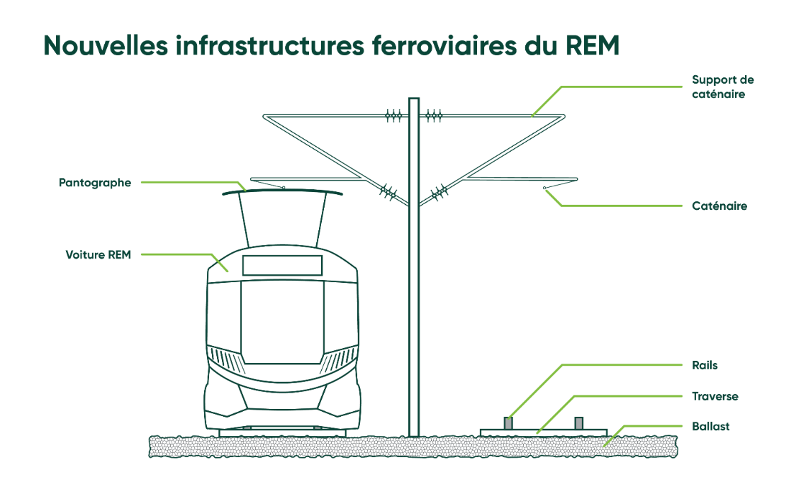 Pour laisser place au REM, les anciennes infrastructures seront démantelées ou démolies progressivement dès janvier 2021. Système électrique, rails, traverses, ballast de pierres, quais : ces anciens équipements seront complètement modifiés et remplacés par de nouveaux systèmes modernes.