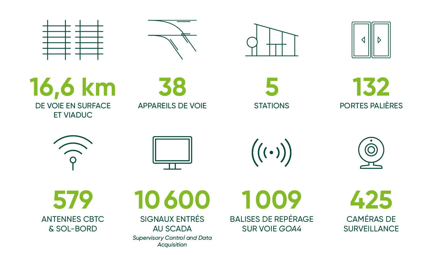 Depuis la fin 2020, un programme exhaustif et rigoureux de tests est en cours pour valider la fonctionnalité et la fiabilité des systèmes. Rien n’est négligé ni laissé au hasard. Seulement pour l’antenne Rive-Sud, un nombre impressionnant de composantes sont à tester pour mettre en service un métro léger 100 % automatisé.