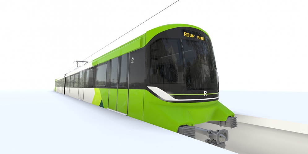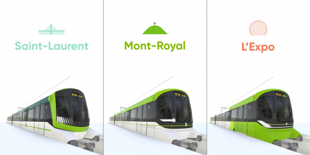 Option 1 - Saint-Laurent, de côté | La ligne verte sur le côté symbolise le nouveau pont. Le R qui s’y appose, représente le REM qui le traverse