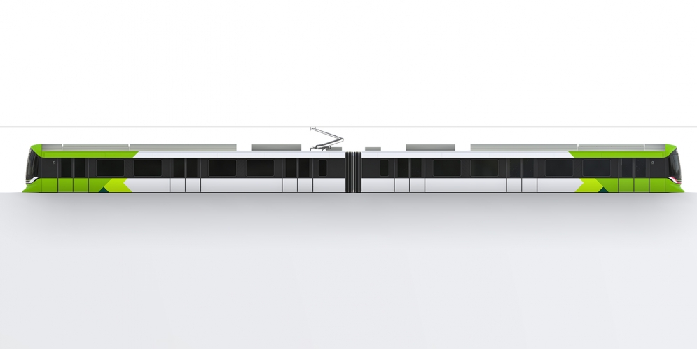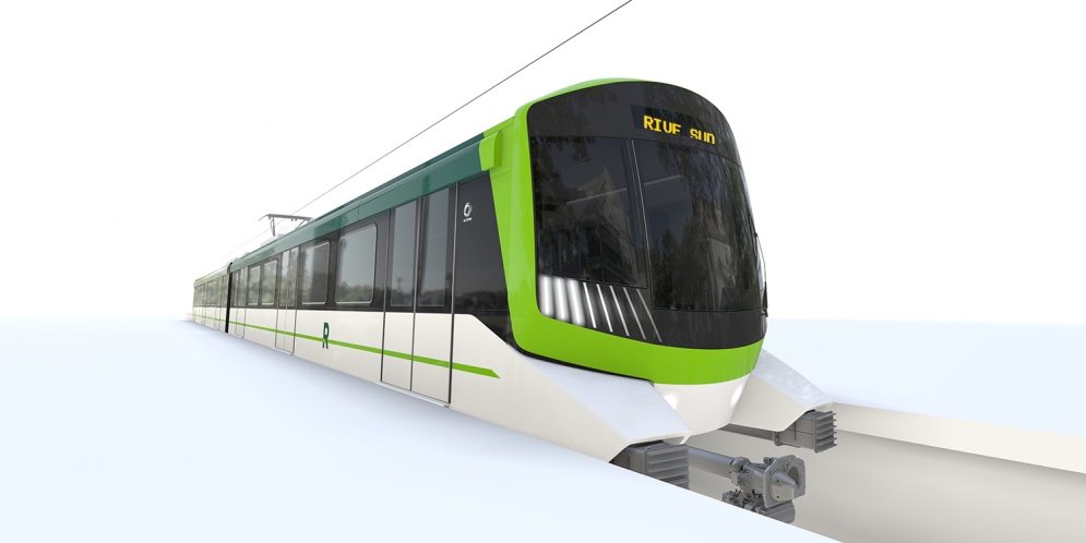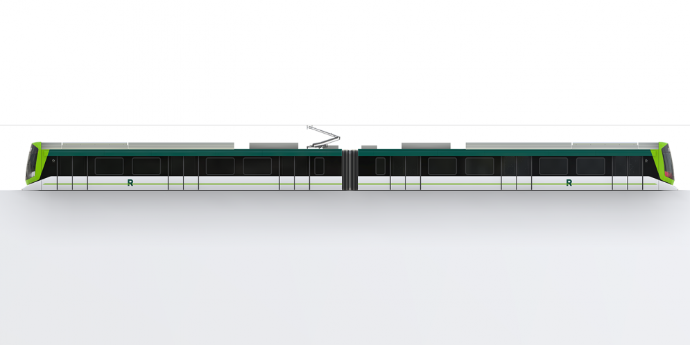 Option 2 - Mont-Royal, de biais | Un design épuré qui mise sur l’horizontalité. Il symbolise, avec son toit entièrement vert, le mont Royal, poumon de la ville et lieu phare traversé par le REM
