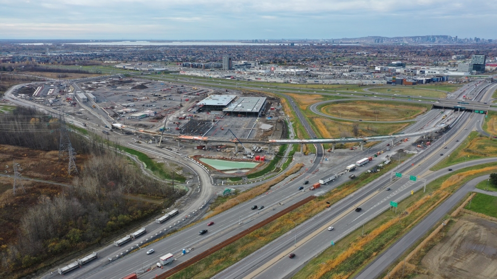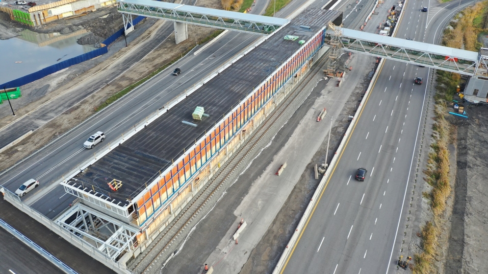 Station Rive-Sud, centre de maintenance et d'opération, structure aérienne au-dessus de l'autoroute 10