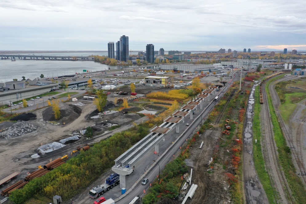 Pose des dernières poutres de la structure aérienne dans Pointe-Saint-Charles | Janvier 2022