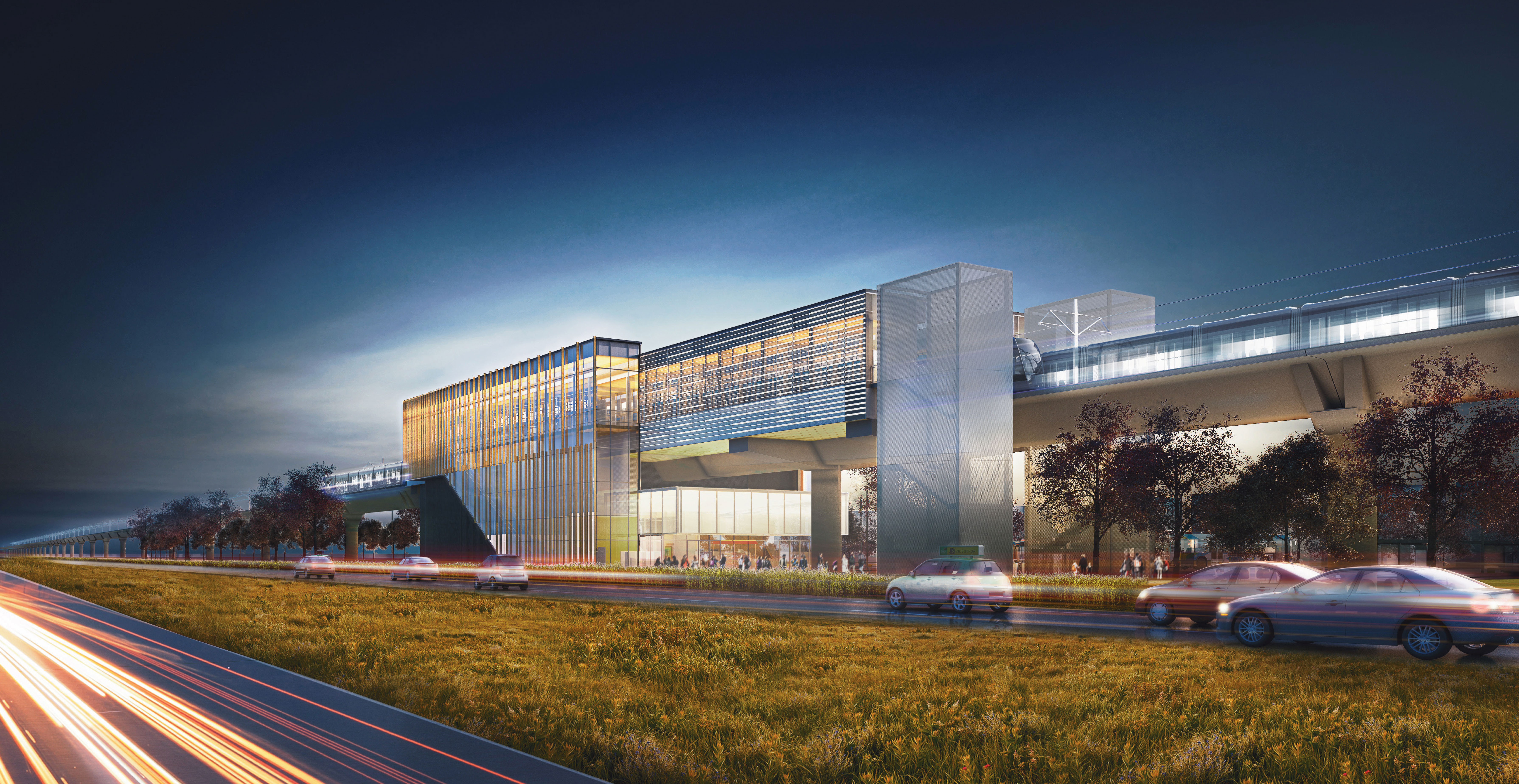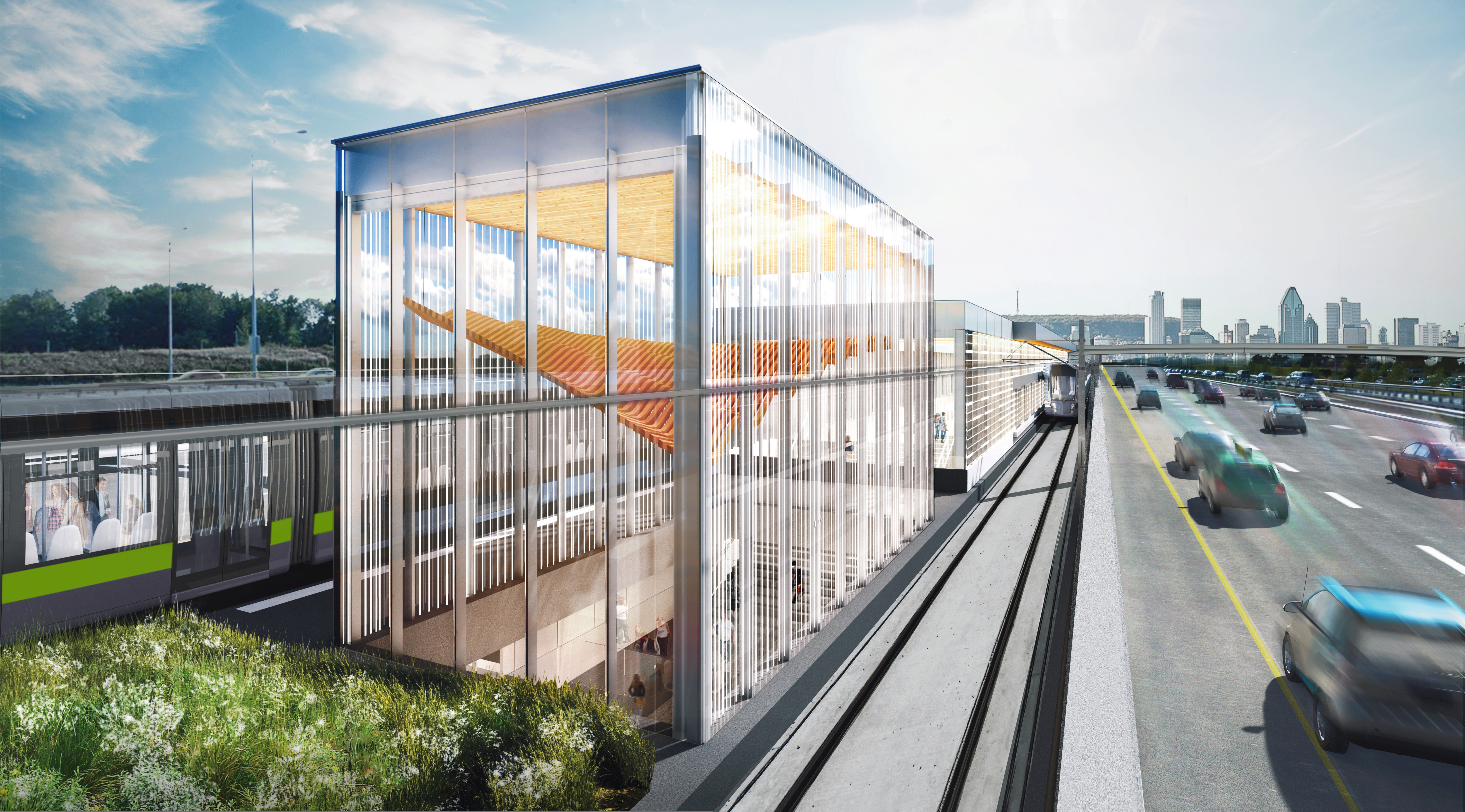 Rendus architecturaux des futures stations du Réseau express métropolitain